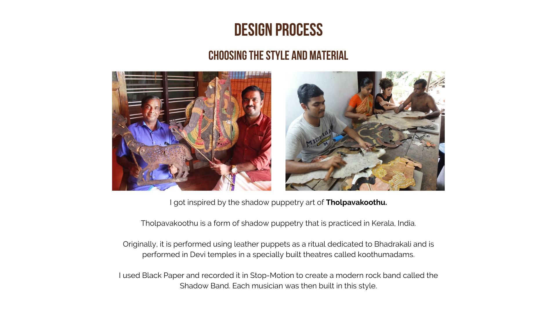 This is the Shadow Band, a rock band created by me using the style of Tholpavakoothu Shadow Puppetry, and the Stop-Motion Animation Technique.